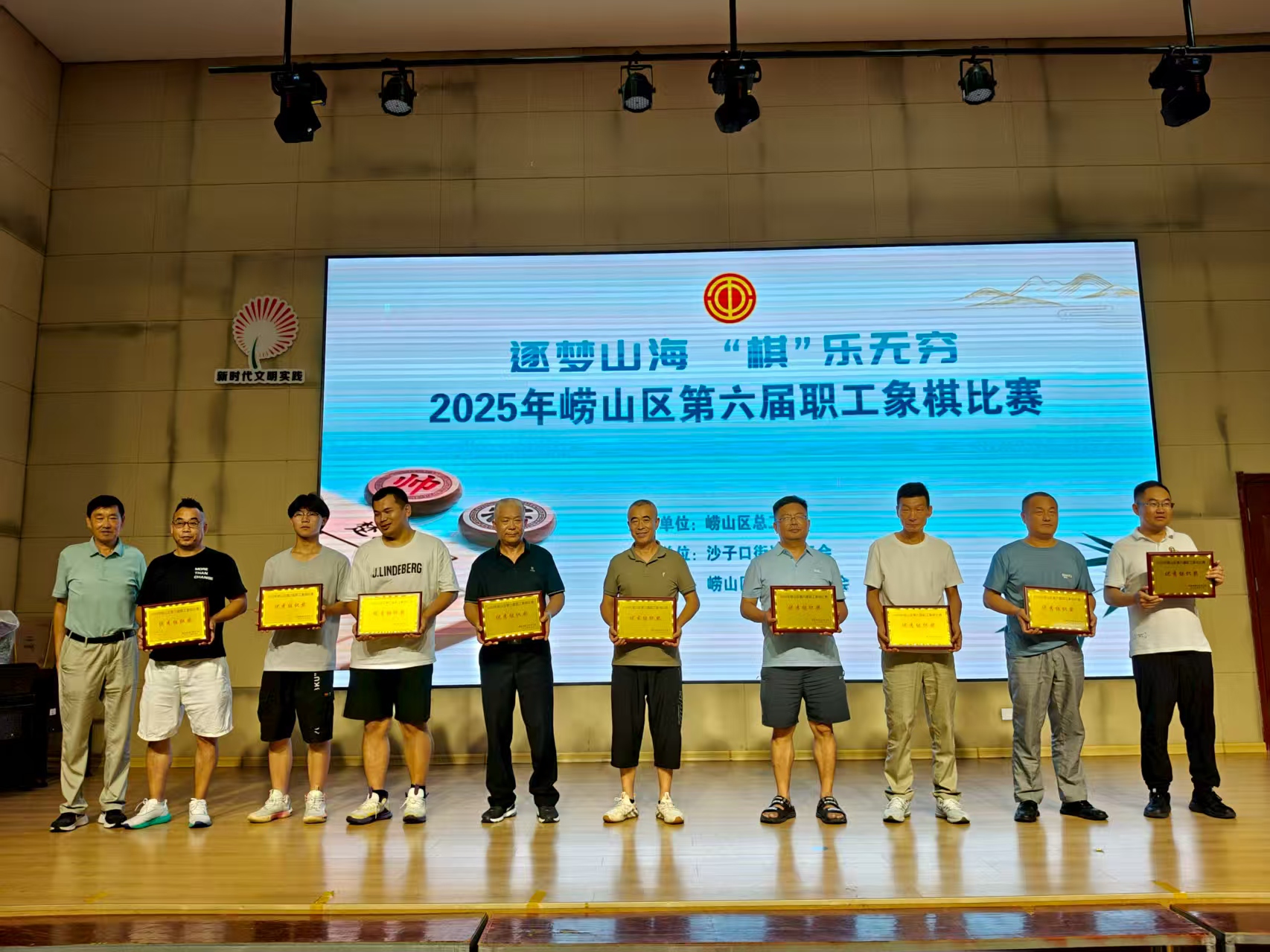 金秋八月,山海之间,一场没有硝烟的智慧之战在崂山脚下精彩上演。8月10日,由崂山区总工会精心策划,沙子口街道总工会承办、崂山区象棋协会承办的崂山区第六届职工象棋比赛在沙子口街道办事处便民文化服务中心圆满收官。作为2025年"逐梦山海"文体活动嘉年华的华彩篇章,本次赛事不仅延续了往届的精彩,更以全新的面貌展现了崂山职工的文化风采。
